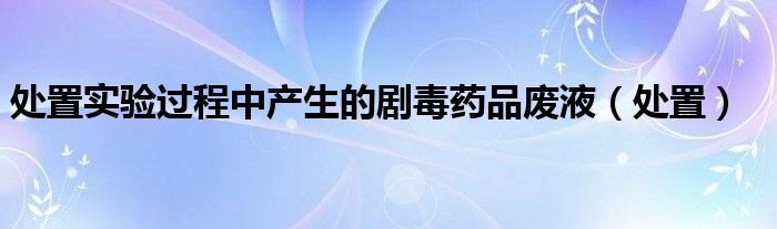 大家好,小晋来为大家解答以下问题,关于处置实验过程中产生的剧毒药品废液,处置很多人还不知道,今天让我们一起来看看吧!