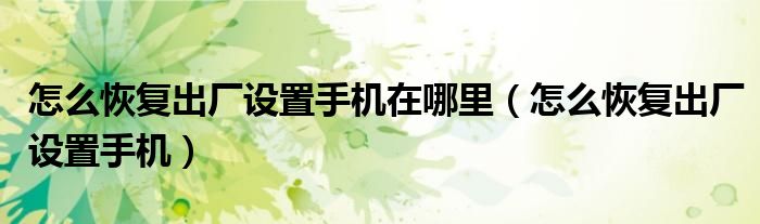 大家好,小晋来为大家解答以下问题,关于怎么恢复出厂设置手机在哪里,怎么恢复出厂设置手机很多人还不知道,今天让我们一起来看看吧!