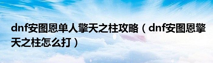 关于dnf安图恩单人擎天之柱攻略,dnf安图恩擎天之柱怎么打这个很多人还不知道,今天菲菲来为大家解答以上的问题,现在让我们一起来看看吧!