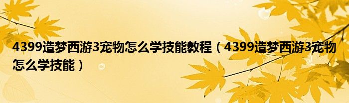关于4399造梦西游3宠物怎么学技能教程,4399造梦西游3宠物怎么学技能这个很多人还不知道,今天菲菲来为大家解答以上的问题,现在让我们一起来看看吧!