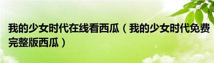 关于我的少女时代在线看西瓜,我的少女时代免费完整版西瓜这个很多人还不知道,今天菲菲来为大家解答以上的问题,现在让我们一起来看看吧!