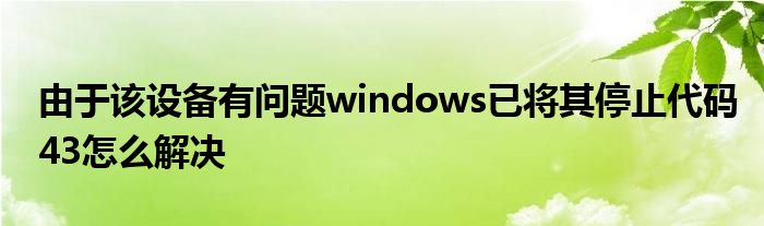 关于由于该设备有问题windows已将其停止代码43怎么解决这个很多人还不知道,今天菲菲来为大家解答以上的问题,现在让我们一起来看看吧!