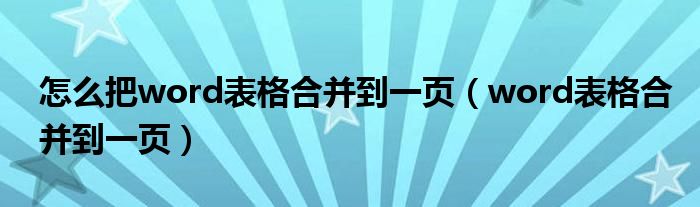 怎么把word表格合并到一页(word表格合并到一页)