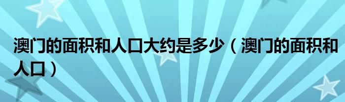 关于澳门的面积和人口大约是多少,澳门的面积和人口这个很多人还不知道,今天菲菲来为大家解答以上的问题,现在让我们一起来看看吧!