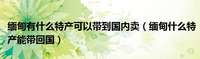 大家好,小晋来为大家解答以下问题,关于缅甸有什么特产可以带到国内卖,缅甸什么特产能带回国很多人还不知道,今天让我们一起来看看吧!