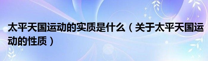 1、性质:太平天国运动是一场反帝反封建的农民战斗,它的性质也就是反帝反封建的农民战斗。