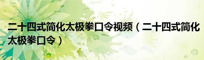 关于二十四式简化太极拳口令视频,二十四式简化太极拳口令这个很多人还不知道,今天菲菲来为大家解答以上的问题,现在让我们一起来看看吧!