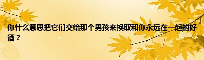 关于你什么意思把它们交给那个男孩来换取和你永远在一起的好酒?这个很多人还不知道,今天菲菲来为大家解答以上的问题,现在让我们一起来看看吧!