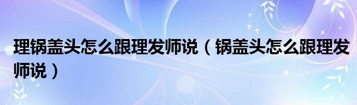 大家好,小晋来为大家解答以下问题,关于理锅盖头怎么跟理发师说,锅盖头怎么跟理发师说很多人还不知道,今天让我们一起来看看吧!