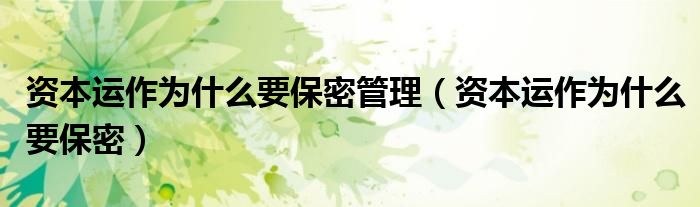 资本运作为什么要保密管理(资本运作为什么要保密)