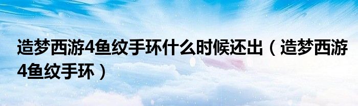 关于造梦西游4鱼纹手环什么时候还出,造梦西游4鱼纹手环这个很多人还不知道,今天菲菲来为大家解答以上的问题,现在让我们一起来看看吧!