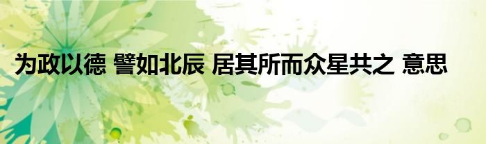 关于为政以德 譬如北辰 居其所而众星共之 意思这个很多人还不知道,今天菲菲来为大家解答以上的问题,现在让我们一起来看看吧!