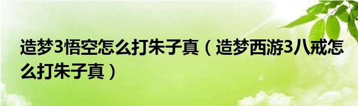 关于造梦3悟空怎么打朱子真,造梦西游3八戒怎么打朱子真这个很多人还不知道,今天菲菲来为大家解答以上的问题,现在让我们一起来看看吧!