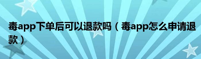 大家好,小晋来为大家解答以下问题,关于毒app下单后可以退款吗,毒app怎么申请退款很多人还不知道,今天让我们一起来看看吧!