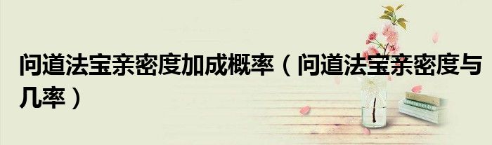 大家好,小晋来为大家解答以下问题,关于问道法宝亲密度加成概率,问道法宝亲密度与几率很多人还不知道,今天让我们一起来看看吧!