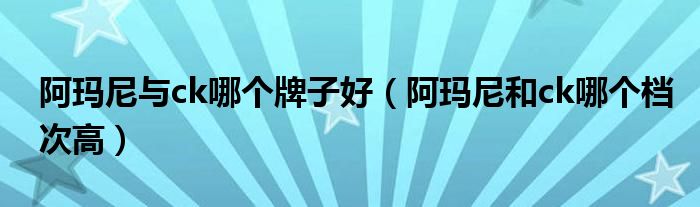 大家好,小晋来为大家解答以下问题,关于阿玛尼与ck哪个牌子好,阿玛尼和ck哪个档次高很多人还不知道,今天让我们一起来看看吧!