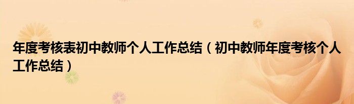关于年度考核表初中教师个人工作总结,初中教师年度考核个人工作总结这个很多人还不知道,今天菲菲来为大家解答以上的问题,现在让我们一起来看看吧!
