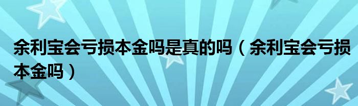 大家好,小晋来为大家解答以下问题,关于余利宝会亏损本金吗是真的吗,余利宝会亏损本金吗很多人还不知道,今天让我们一起来看看吧!