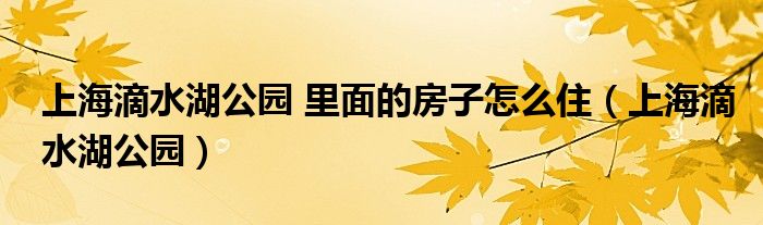 上海滴水湖公园 里面的房子怎么住(上海滴水湖公园)