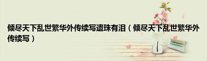 关于倾尽天下乱世繁华外传续写遗珠有泪,倾尽天下乱世繁华外传续写这个很多人还不知道,今天菲菲来为大家解答以上的问题,现在让我们一起来看看吧!