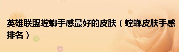 大家好,小晋来为大家解答以下问题,关于英雄联盟螳螂手感最好的皮肤,螳螂皮肤手感排名很多人还不知道,今天让我们一起来看看吧!