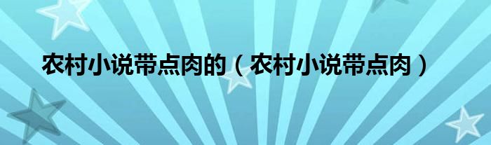 关于农村小说带点肉的,农村小说带点肉这个很多人还不知道,今天菲菲来为大家解答以上的问题,现在让我们一起来看看吧!