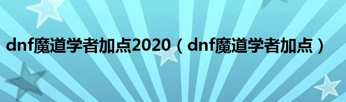 dnf魔道学者加点2020(dnf魔道学者加点)