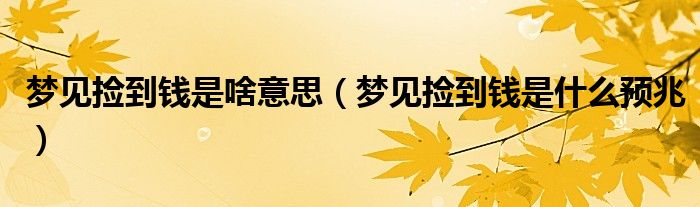关于梦见捡到钱是啥意思,梦见捡到钱是什么预兆这个很多人还不知道,今天菲菲来为大家解答以上的问题,现在让我们一起来看看吧!