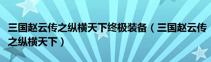 大家好,小晋来为大家解答以下问题,关于三国赵云传之纵横天下终极装备,三国赵云传之纵横天下很多人还不知道,今天让我们一起来看看吧!