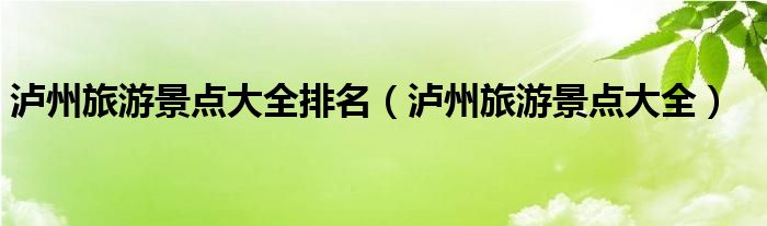 泸州旅游景点大全排名(泸州旅游景点大全)