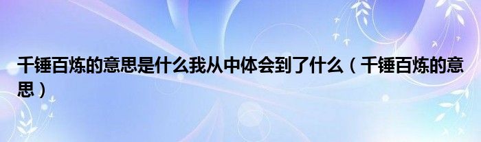 大家好,小晋来为大家解答以下问题,关于千锤百炼的意思是什么我从中体会到了什么,千锤百炼的意思很多人还不知道,今天让我们一起来看看吧!