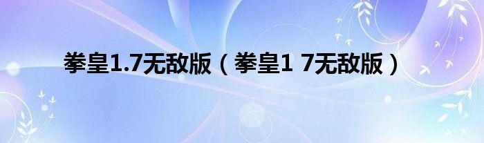 拳皇1.7无敌版(拳皇1 7无敌版)