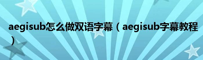 aegisub怎么做双语字幕(aegisub字幕教程)