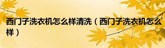 西门子洗衣机怎么样清洗(西门子洗衣机怎么样)