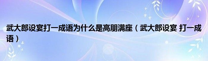 武大郎设宴打一成语为什么是高朋满座(武大郎设宴 打一成语)