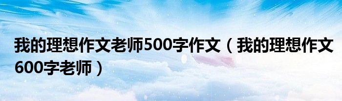 关于我的理想作文老师500字作文,我的理想作文600字老师这个很多人还不知道,今天菲菲来为大家解答以上的问题,现在让我们一起来看看吧!