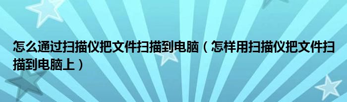 怎么通过扫描仪把文件扫描到电脑(怎样用扫描仪把文件扫描到电脑上)