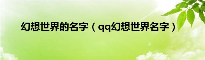 大家好,来宝来为大家解答以下问题,幻想世界的名字,qq幻想世界名字很多人还不知道,今天让我们一起来看看吧!