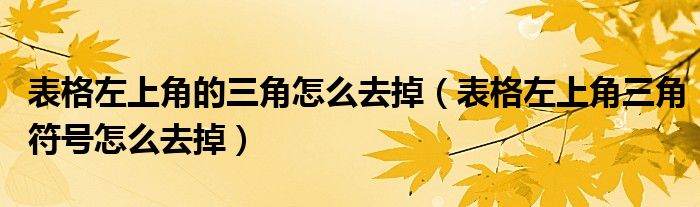 关于表格左上角的三角怎么去掉,表格左上角三角符号怎么去掉这个很多人还不知道,今天菲菲来为大家解答以上的问题,现在让我们一起来看看吧!