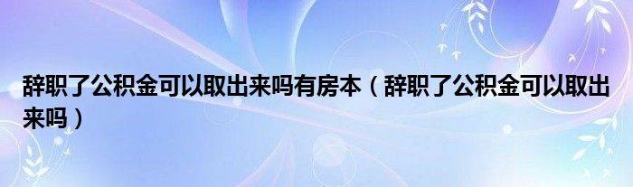 大家好,小晋来为大家解答以下问题,关于辞职了公积金可以取出来吗有房本,辞职了公积金可以取出来吗很多人还不知道,今天让我们一起来看看吧!