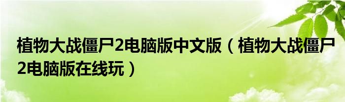 植物大战僵尸2电脑版中文版,植物大战僵尸2电脑版在线玩很多人还不知道,乐乐来为大家解答以上问题,现在让我们一起来看看吧!