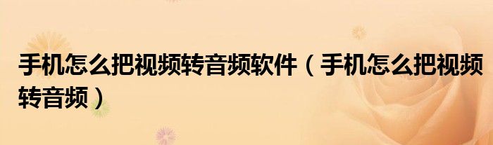 手机怎么把视频转音频软件(手机怎么把视频转音频)