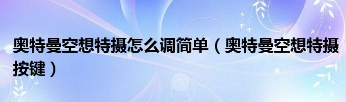 关于奥特曼空想特摄怎么调简单,奥特曼空想特摄按键这个很多人还不知道,今天菲菲来为大家解答以上的问题,现在让我们一起来看看吧!