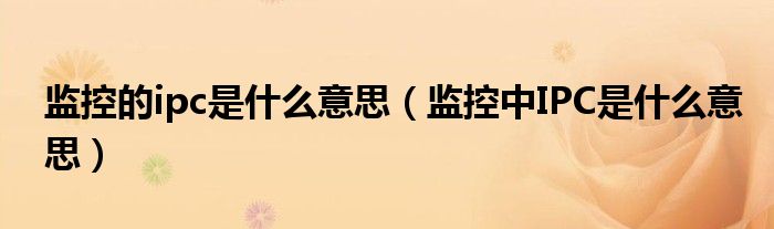 监控的ipc是什么意思(监控中IPC是什么意思)