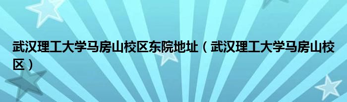 关于武汉理工大学马房山校区东院地址,武汉理工大学马房山校区这个很多人还不知道,今天菲菲来为大家解答以上的问题,现在让我们一起来看看吧!