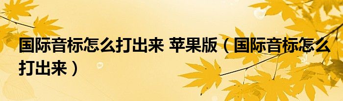 关于国际音标怎么打出来 苹果版,国际音标怎么打出来这个很多人还不知道,今天菲菲来为大家解答以上的问题,现在让我们一起来看看吧!