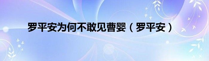 关于罗平安为何不敢见曹婴,罗平安这个很多人还不知道,今天菲菲来为大家解答以上的问题,现在让我们一起来看看吧!