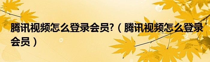 大家好,小晋来为大家解答以下问题,关于腾讯视频怎么登录会员?,腾讯视频怎么登录会员很多人还不知道,今天让我们一起来看看吧!