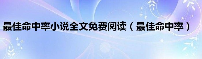关于最佳命中率小说全文免费阅读,最佳命中率这个很多人还不知道,今天菲菲来为大家解答以上的问题,现在让我们一起来看看吧!