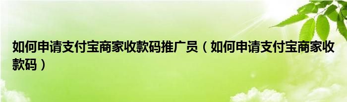 大家好,小晋来为大家解答以下问题,关于如何申请支付宝商家收款码推广员,如何申请支付宝商家收款码很多人还不知道,今天让我们一起来看看吧!